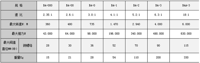 BA-2型傘齒輪產品參數